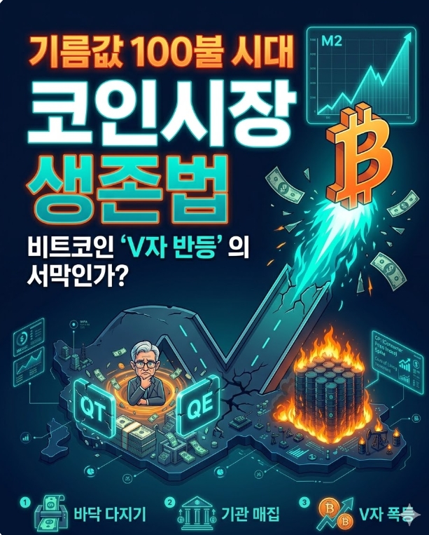 기름값 100불 시대는 우리에게 고통스러운 시기임에 분명합니다. 하지만 경제적 자유는 언제나 남들이 두려워할 때 본질을 꿰뚫어 보는 통찰력에서 시작됩니다. 지금의 폭풍우가 지나간 뒤, 비트코인이 그려낼 눈부신 V자 반등의 궤적을 함께 지켜보시길 바랍니다.