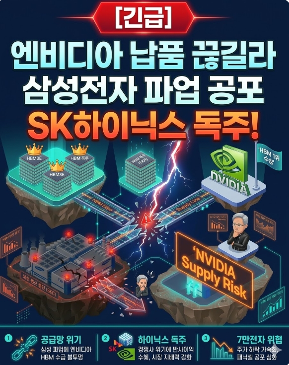 삼성전자 반도체 파업 임박! 엔비디아 HBM3E 납품 중단 리스크와 SK하이닉스 반사 이익 시나리오를 심층분석합니다.